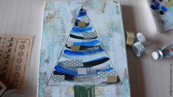 Создаем коллаж «Новогодний» на холсте в смешанной технике