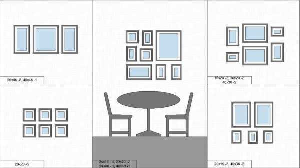 Если Вам не понравился ни один из готовых вариантов размещения фотографий на стене, можете придумать свой, следуя правилам: