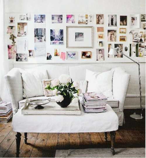 Коллаж в форме облака делает эту комнату очень привлекательной. Это идея размещения фото без рамок подсмотрена в одном парижском лофте. Узнайте о нём больше на remodelista.com