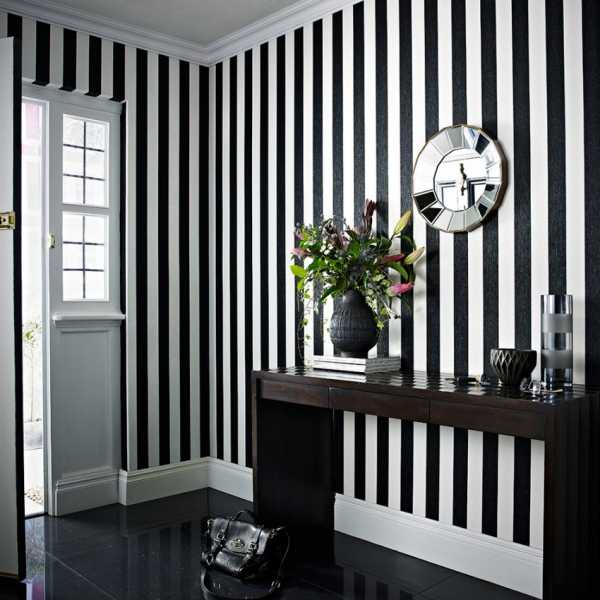 Освежить интерьер и добавить нотки новаторства поможет вертикальное расположение обоев. Это зрительно удлиняет прихожую, а в сочетании с горизонтально поклеенными однотонными дает интересный эффект.