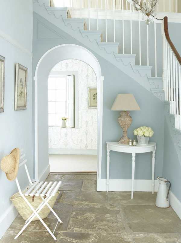 Более темные оттенки внизу прихожей — практичный ход, так они меньше пачкаются.