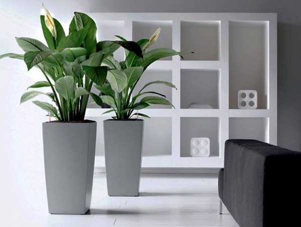 10. Спатифиллюм – неприхотливое, цветущее на протяжении всего года растение. Летом хорошо растет на западных, восточных и северных окнах, зимой лучше переставить на южное.