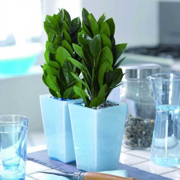 6. В особой заботе не нуждается и экзотический замиокулькас. Хорошо переносит плохое освещение и перерывы в поливе почвы. Замиакулькас не страдает и от яркого солнца, не требует частых пересадок и подкормок, хорошо растет в маленьком горшке.