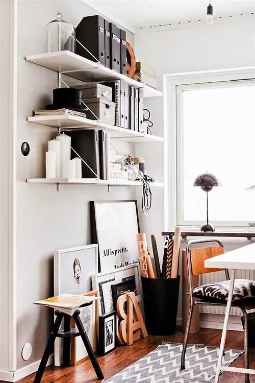 5) Поскрести по сусекам. Загляните во все углы. Если в них действительно можно заглянуть – то считайте, что в комнате потеряно пару метров ценного пространства. Угловая мебель: полки, шкафчики, столы, сэкономят место и разместят множество нужных вещей.