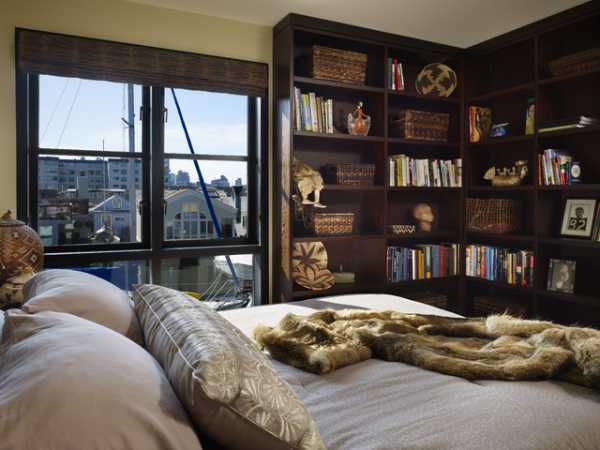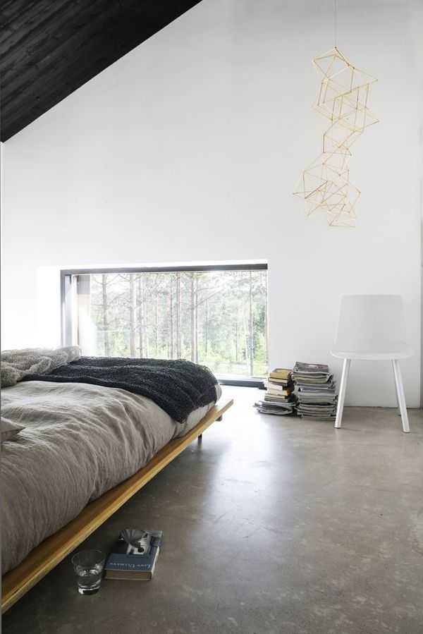 Интересные возможности открывает размещение мебели. Например, большая кровать, расположенная по диагонали, выиграет немного свободного места.