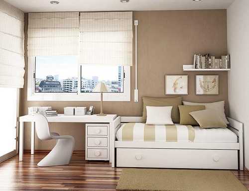 По правде говоря, в такой комнате совсем не разгуляться. Останется здесь только все самое необходимое, а от многих предметов нужно будет вовсе отказаться. Дизайн маленькой комнаты оформить в целом не сложно. Главное, чтобы она не казалась тесной и неуютной.