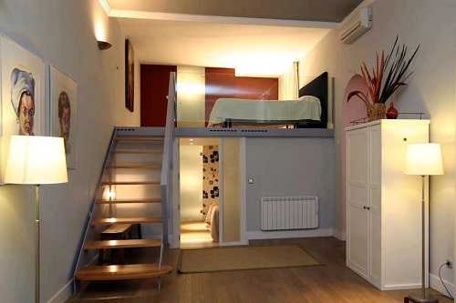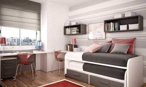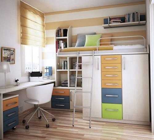 2) На семь бед – один диван, или проще – многофункциональность. Незаменимый вариант для маленькой комнаты – мебель-трансформер. Диван, который преобразуется в спальное место, обязательно с ящиком для хранения белья – то, что нужно. Или модульная мебель в виде единой конструкции, состоящей из столика, комода, удобных полочек и лестницы, ведущей на второй этаж к кровати.