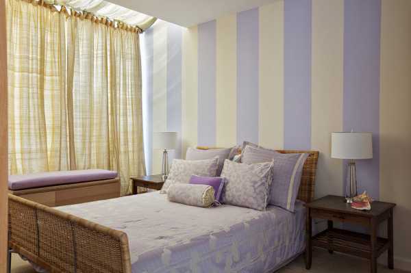 Еще одно традиционное решение – это вертикальные полосы (но не слишком яркие и частые). Обои или шторы в полоску успешно справятся с этой задачей.