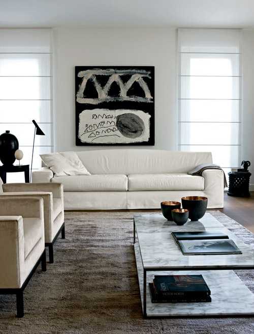 3) Простота. Никаких вензелей, резьбы, излишней изогнутости и пышных украшений. Мебель должна быть максимально простой (но не обязательно заурядной) формы. Допустима игра с цветом. Диванчик или стулья вполне могут быть контрастными, но не настолько, чтобы приковывать к себе все внимание. В любом случае яркую мебель лучше размещать в глубине комнаты, подальше от входа.