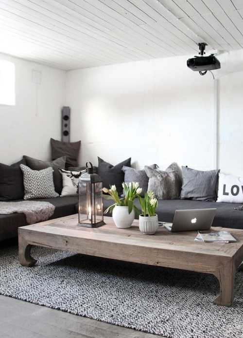 Третий цвет – самый яркий. Это может быть темный акцент (вплоть до черного) или очень яркий, который отражается в небольших деталях: вазах, рамках фотографий или картинах, ковриках и прочих мелочах. Как правило, это небольшие штрихи к целостной картине интерьера, радующие глаз, но не стягивающие к себе много внимания.
