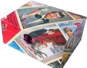 Из обычной обувной коробки можно своими руками состряпать вот такую замечательную экстравагантную декоративную коробку, если оклеить ее подарочной бумагой (это самое простое) или рекламой из глянцевых журналов (это посложнее, но и интереснее).