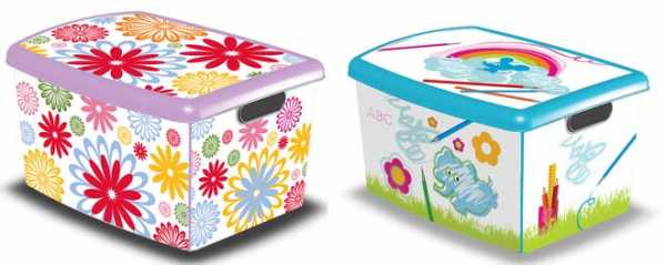 А если вам не хочется возиться с декупажем, можно просто купить разноцветную пластиковую коробку – отличное решение для детской комнаты и не только.