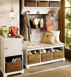 Корзины обычно вместительны и хорошо подходят для хранения габаритных вещей – от обуви до кухонной утвари. В западном дизайне их часто используют для хранения полотенец в ванных комнатах, как на фото справа.