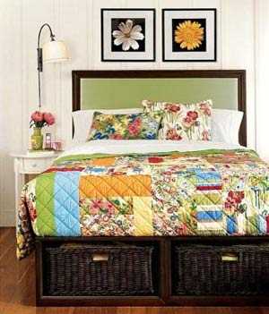 Самый проверенный способ – на фото слева. Несколько декоративных коробок, подобранных в одной цветовой палитре и с похожим узором, составляются вместе и образуют маленький декоративный уголок в спальне, гостиной или детской.