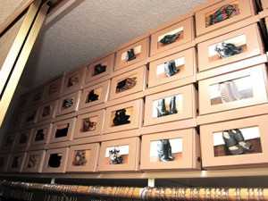Если коробка стоит высоко, а вещи из нее достаются редко, выбросьте на фиг эти вещи, то на ручку можно прикрепить красивую бирку, где будет подписано содержимое коробки.
