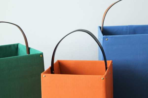 Решение очевидное. Есть картонные коробки, но просто в них всё складывать не слишком интересно, не всегда приятно. А вот цветные коробки выглядят не так квадратно, особенно если они обтянуты тканью, и к ним прикреплены прочные ремни. И в переноске удобнее.