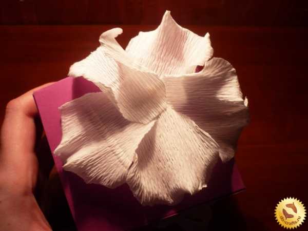 Приклеиваем лепестки на картон по кругу, формируя цветок.