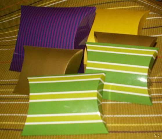 Если вы хотите сделать упаковку необычной формы, воспользуйтесь одной из следующих моделей. На первом фото показан простейший вариант. Его очень легко сделать, так как нужно выполнить только четыре сгиба. Вверху коробочка собирается за счет прорези и входящего в нее элемента крепления.