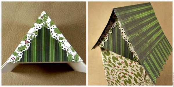 Все линии, я продавливаю тупой стороной ножа, чтобы легче сгибалось. Треугольниками закрываю боковины крыши.