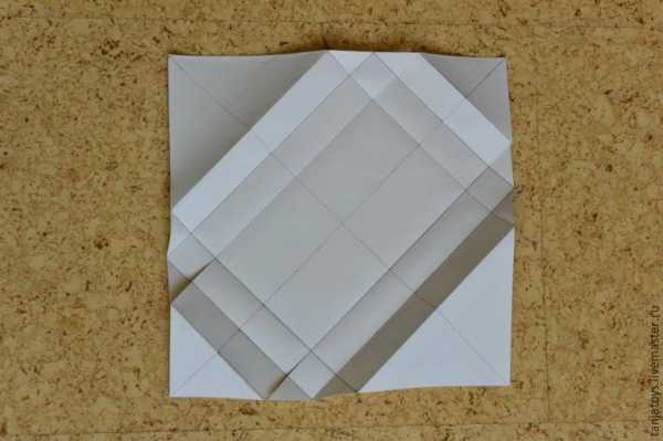 По всем линиям (кроме первых диагоналей) сгибаем, и собираем, как оригами.