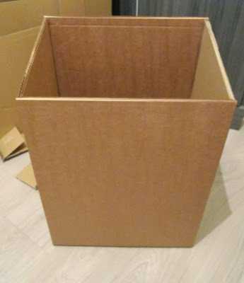 1. Вырезать из картона стенки, крышку и дно ящика нужного размера, все детали в двух экземплярах, их потом нужно склеить между собой, для большей прочности. Подойдёт клей для потолочной плитки («Титан» и т.п.) Размеры ящика я выбрала такие 50х40х30 см, под размер свободного проёма в ванной.