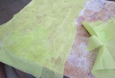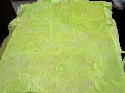 Крышку я решила сделать с внутренней стороны другим цветом и взяла для этого однотонные салатовые салфетки. Салфетки ровно сложно приклеить, так что делаем складки, так получается интересней=)