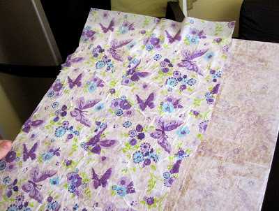 5. Теперь приступаем к самой интересной части — оформлению! Нам понадобится пачка бумажных салфеток с подходящим рисунком. Я выбрала вот такие трёхслойные салфетки размером 30х30см ( у меня ушло меньше пачки). Салфетки нужно разделить на слои.