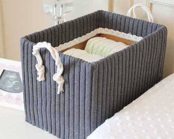 Кстати, самодельная корзина для белья может служить и коробом для игрушек вашего ребенка, а также отличным местом для хранения различных газет, журналов, поделочных тканей или клубков. Некоторые также используют корзины для белья не в ванной, а в прихожей – в них складываются шарфы, шапки и варежки всей семьи.