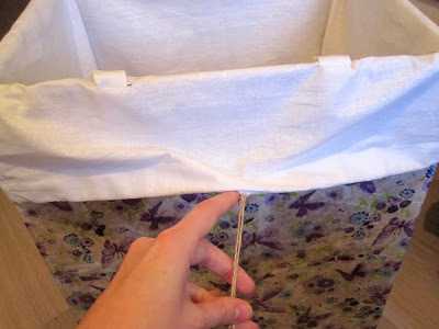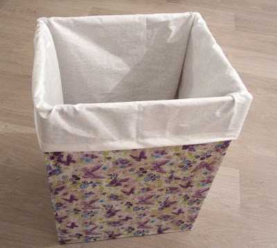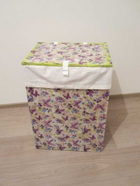 Складная корзина для белья уже готова; осталось только сделать симпатичную обшивку по верхним граням, чтобы она смотрелась еще красивее.