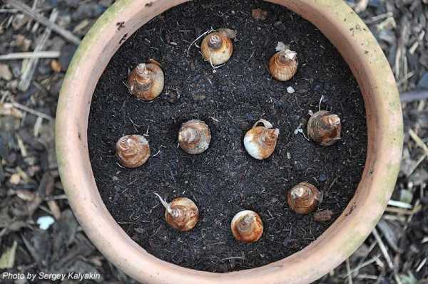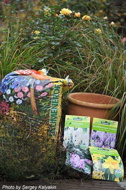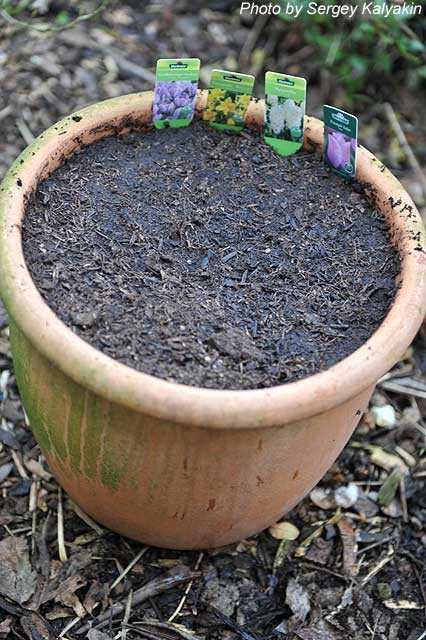 Итак, понадобится вместительный горшок. В моем случае терракотовый, а в подмосковных условиях – лучше большой толстостенный пластиковый, который можно на зиму вкопать в землю без боязни, что он повредится. Также грунт для посадки цветов и, собственно, сами луковицы.