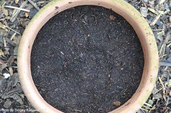 Засыпаем их грунтом и уплотняем. В итоге грунт должен не доходить до края горшка на 1-2 см.