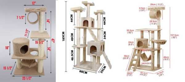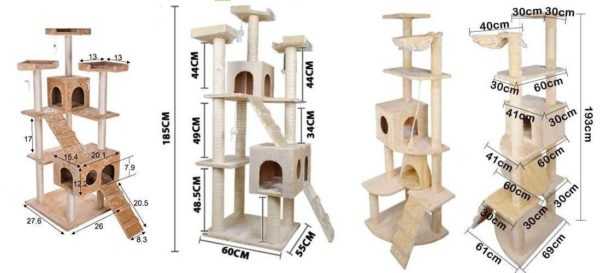 Минимальная высота кошачьего уголка — около метра. Такие невысокие сооружения безопасны даже для котят, правда, они быстро подрастают и потом хотят забраться повыше.