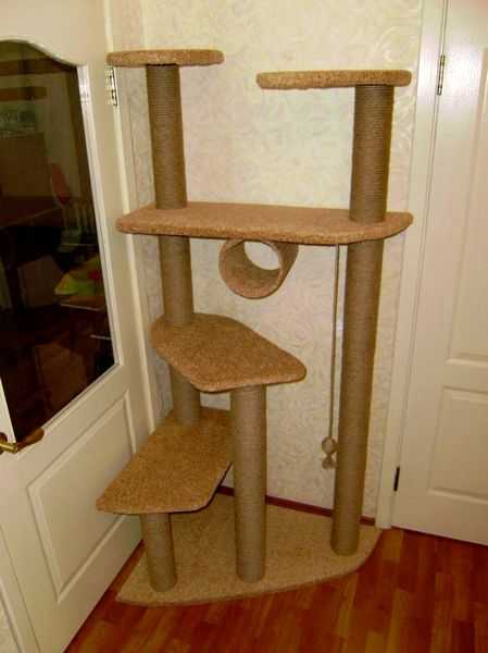 Более сложные конструкции, которые представляют собой целые аттракционы с лабиринтами, когтеточками, лесенками, устраивают в комнатах с большой площадью, да и то не факт, что кот захочет воспользоваться всем этим спорткомплексом.