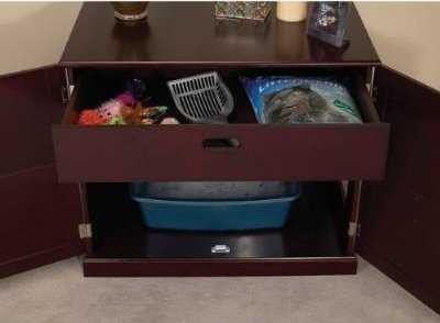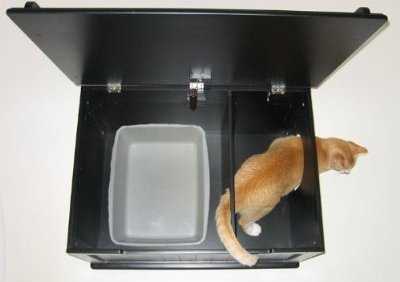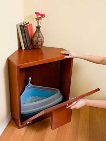 Кто-то может сказать, что устраивать кошачий туалет в мебели — это что-то больно уж шикарно. Но что ни сделаешь для своего любимца! Впрочем, можно соорудить укрытие для кошачьего туалета своими руками из картона.