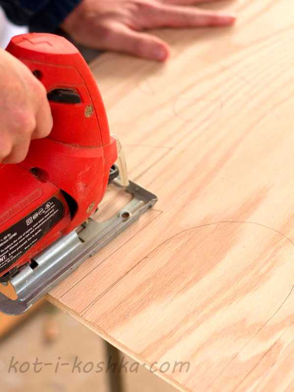 Для этого к листу фанеры прикладывают шаблон, обводят его карандашом и обрезают все лишнее электролобзиком.