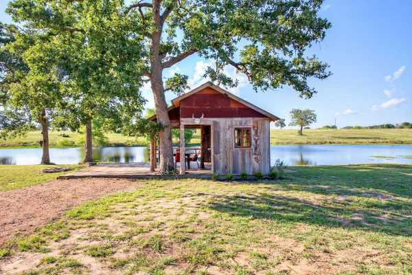 Этот маленький деревянный дом, расположенный на берегу озера среди полей юго-востока Техаса, выглядит так, словно он находится там как минимум 100 лет. И хотя эту догадку подтверждают выветренные сайдинг и ржавая жестяная крыша, на самом деле постройка была сооружена компанией Tiny Texas Houses всего несколько лет назад.