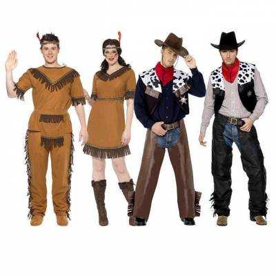 Образ ковбоя настолько узнаваем и колоритен, что костюмы станут едва ли не главным украшением вечеринки! Классическая рубаха в клетку или любого темного цвета (лучше красный, синий или коричневый), слегка потертые джинсы, кожаный ремень с начищенной пряжкой. Поверх рубахи – жилет с множеством кармашков. Поверх джинсов – кожаные (или что полегче, если в помещении жарко) чапсы с бахромой. Высокие сапоги со шпорами (лучше ненастоящими, и уж точно не острыми!). Завершают наряд кобура с револьвером, широкополая шляпа и непременный шейный платок, завязанный «наоборот», чтобы можно было натянуть его на лицо во время лихой скачки!