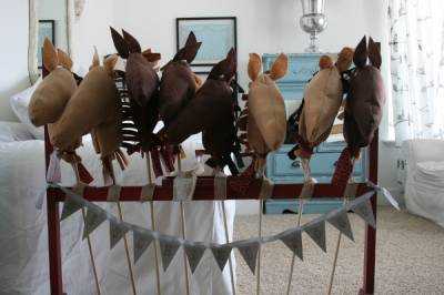 Нарисуйте и вырежьте из ватмана лошадей, быков и домашнюю птицу. Или распечатайте подходящие фото, можно прямо с пейзажами на фоне выгона или прерии. Повесьте на стену где-нибудь подальше от столов, чтобы скотный двор был как бы вдалеке. Прямо поверх картинок или снимков закрепите бутафорскую ограду из прутьев.