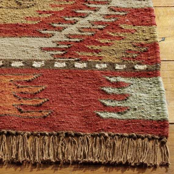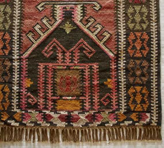 На взгляд западных декораторов, такие килимы производят слишком “тяжелое” и “беспокойное” впечатление, поэтому на волне моды сегодня — более мелкий геометрический орнамент, меньше “свободного поля” + более мягкие переходы цветовой палитры (см. выше).
