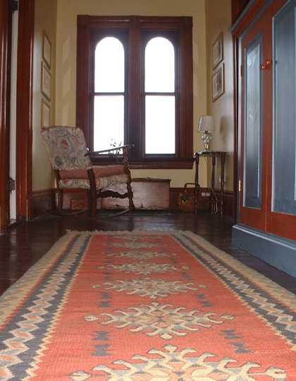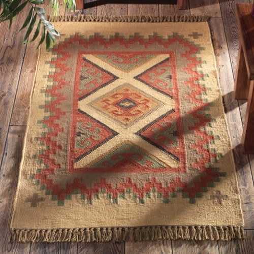 Где расположить килим? Ответ единственный: там, где он будет достаточно заметен (свободная часть пола, не прикрытая мебелью). Если мебели много, — возможно, стоит выбрать более крупный размер ковра.