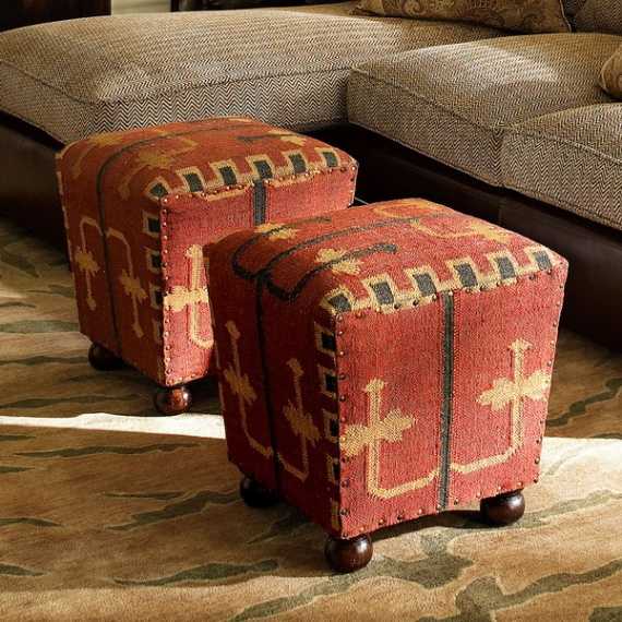 Кроме подушек, килимы отлично сочетаются с элементами колониального стиля, рустика и этническими деталями ручной работы.