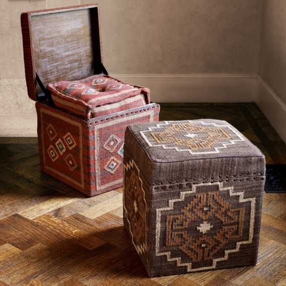 Всплеск интереса к килимам вдохновил поставщиков предлагать не только ковры, но и другие предметы интерьера, созданные по той же технологии. Наиболее популярны пуфы с обивкой, сделанной по технологии килимов, а также — декоративные подушки. Тем не менее, встречаются и совершенно оригинальные штуки, вроде сундуков, “завернутых” в одежку из килимов.