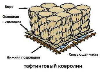 После идет первичная основа, в которую вплетают или вплавляют ворс. Затем наносят закрепляющий состав и последний слой – это вторая основа. Некоторые производители выпускают ковролин без второго слоя основы.