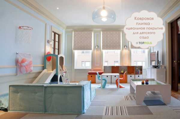 Полы в детских дошкольных учреждениях обязаны выдерживать серьезные нагрузки, поэтому не лишним будет обратить внимание на коммерческие типы ковровых покрытий;