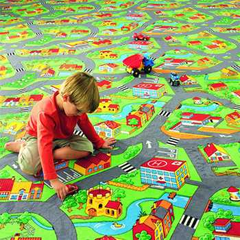 При упоминании коврового покрытия для детей в голове возникает образ ковра, на котором нанесен рисунок населенных пунктов. Конечно, это самая популярная линейка моделей, которые выпускают разные производители.