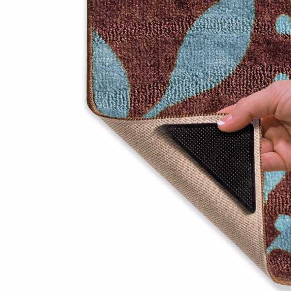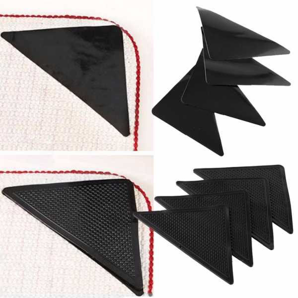 Интересным решением для небольших ковров, ковров в детскую, ковриков в ванную комнату и других являются комплекты маленьких антискользящих уголков подложек. По форме они как небольшие треугольники, которые крепятся по углам ковра и этого вполне хватает, чтобы он в итоге не скользил.