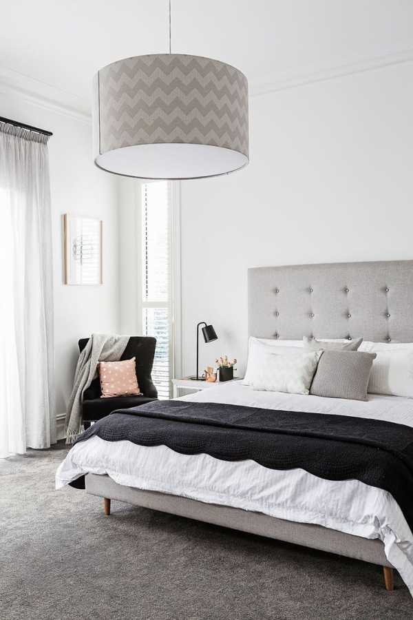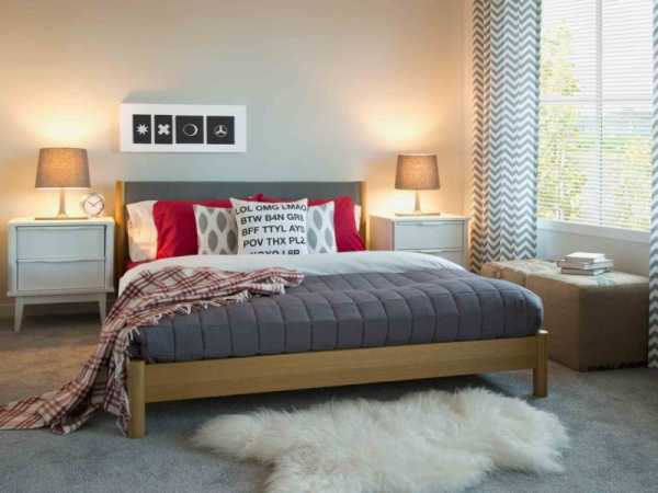 Асимметрия. Чтобы придать спальне неформальный облик и привнести в интерьер ноту легкомысленности, можно предпочесть асимметричное расположение ковра. Для этого его нужно сместить от центральной оси кровати или развернуть так, чтобы один из углов находился под спальным местом. Это интересная схема для современных игривых интерьеров.