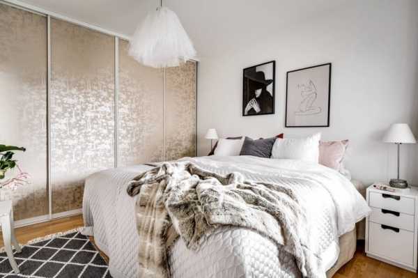 Популярным вариантом для спальни является небольшой прикроватный коврик, расположить который можно у подножья кровати