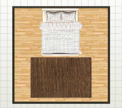 Пара прикроватных ковриков. Этот план аналогичен предыдущего, но без ковра в зоне изножья кровати.