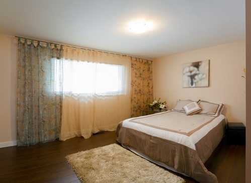 Ковер в изножье. Такую схему выбирают для спален с большим количеством свободного места перед кроватью. Чтобы участок не выглядел пустым, стелют ковер. Это делает просторную спальню гораздо уютнее.